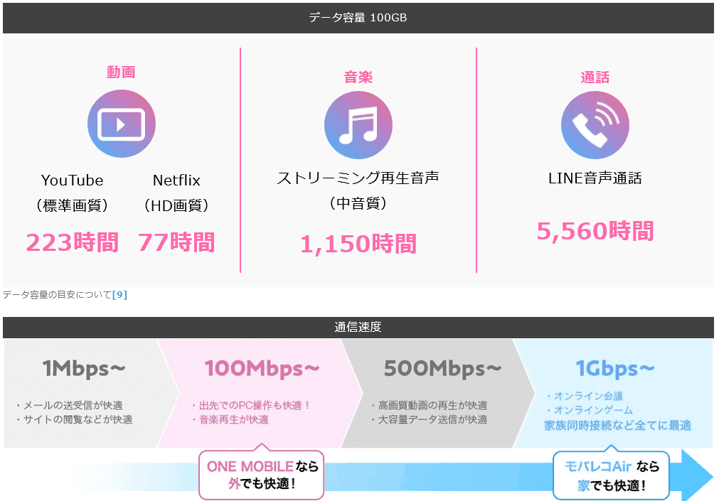 特にONE MOBILE(ポケットWiFi)の通信速度が遅い。