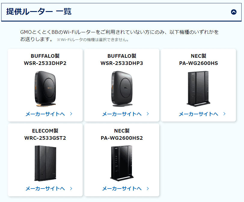 とくとくBB光では無料レンタルできるWiFiルーターは選べません。